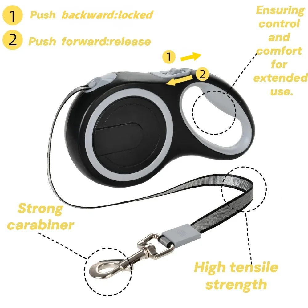 Produto: Guia para Cães, Guia para Cães Grandes, Guia Forte Extensível, Guia Retrátil Automática, Guia para Cães de Corrida ao Ar Livre